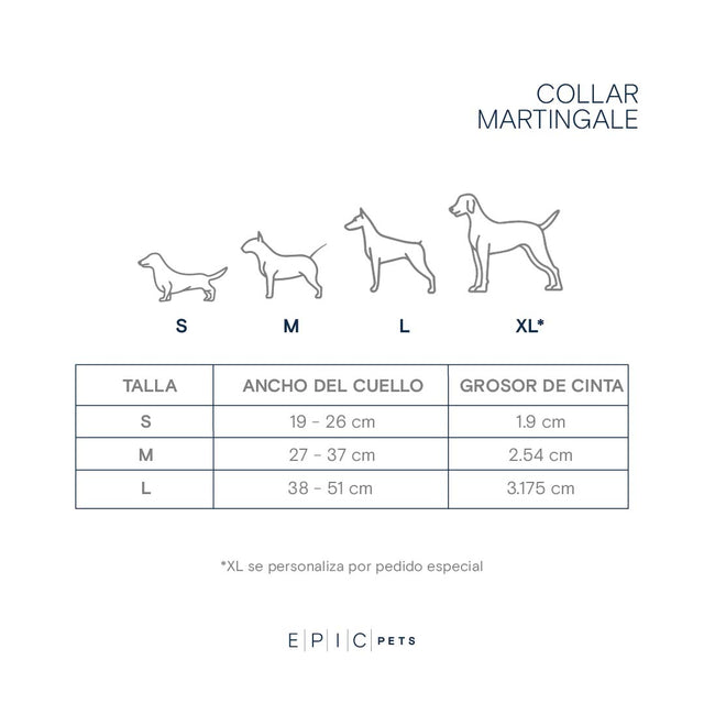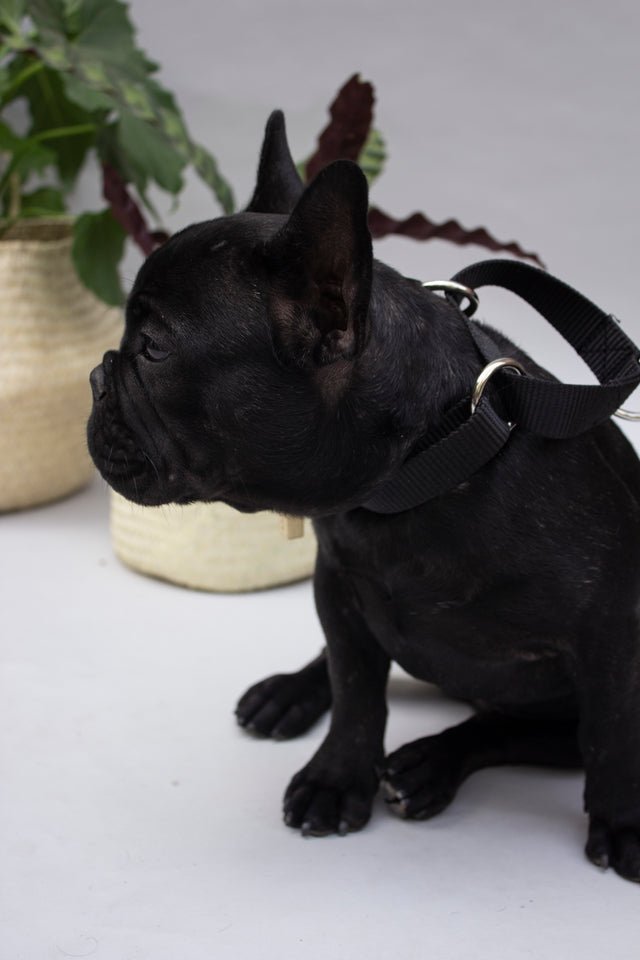 Con su diseño astuto y minimalista, nuestro collar martingale es ideal para el entrenamiento y las caminatas cómodas. Su funcionamiento es sencillo: si el perro jala la correa, el sistema de argollas le aprieta gradualmente el cuello, sin lastimar. Cuando deja de tirar, el collar vuelve a aflojarse.