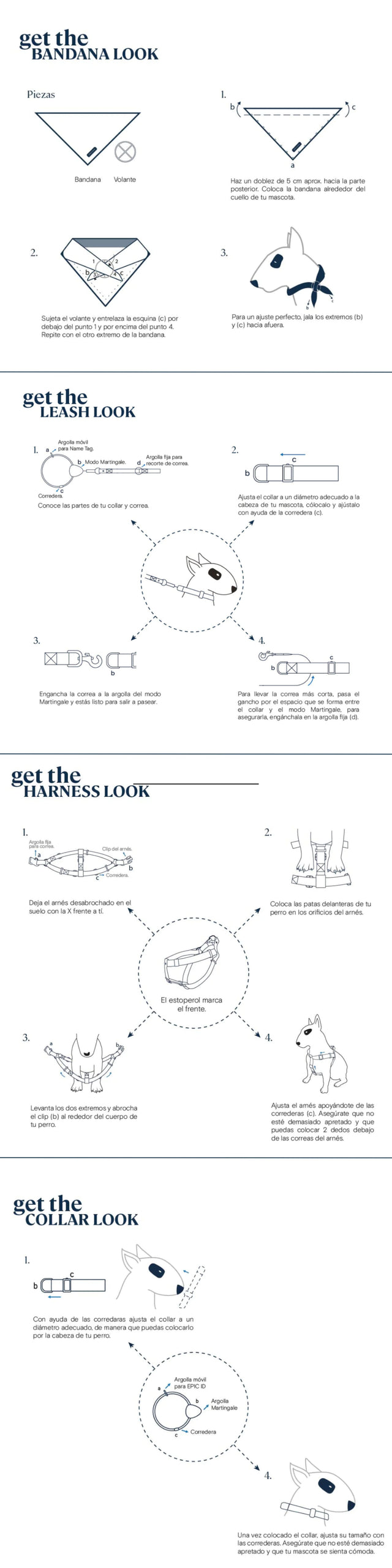 Walk with the best look. The set includes collar, leash, harness and bandana.