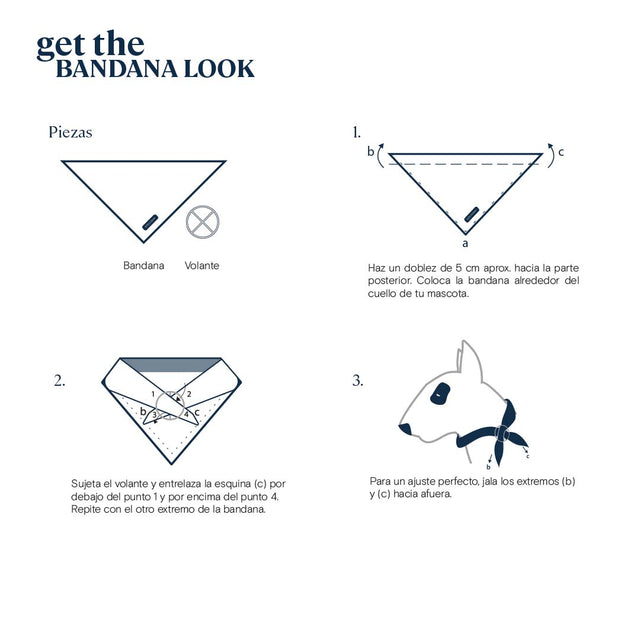 Las bandanas se ofrecen en varias tallas para ajustarse a perros y gatos de todos los tamaños. Consulta nuestra guía de tallas para determinar cuál le quedará mejor a tu mascota. "